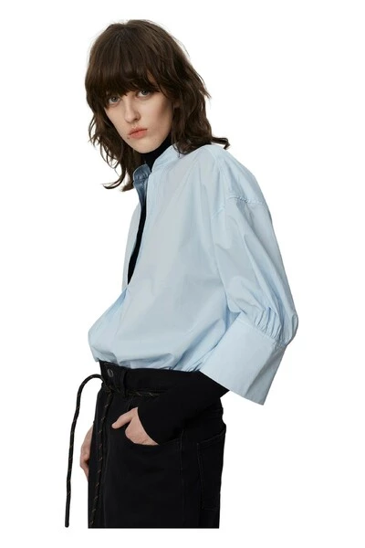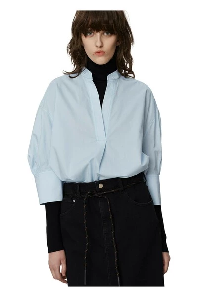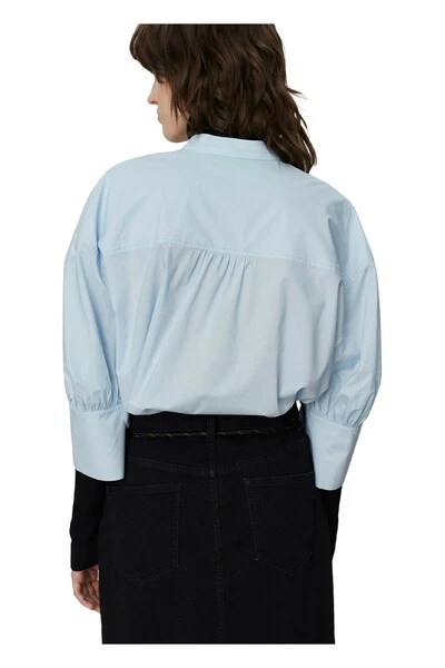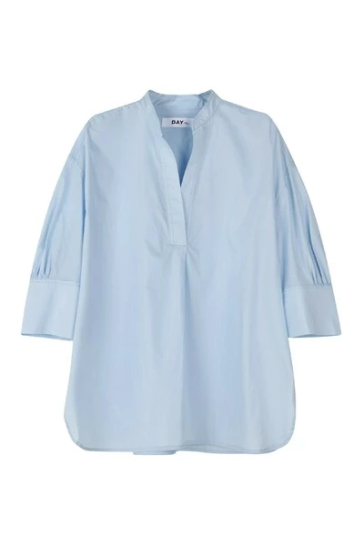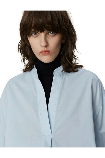 Een boxy, knapperige katoenen blouse met korte mouwen, een open nek, een gedompelde zoom en spleten aan de zijkanten. Draag het bovenop een kokerrok voor een elegante look. Kwaliteit: 100% katoen