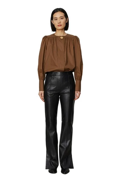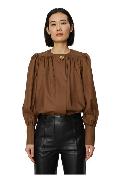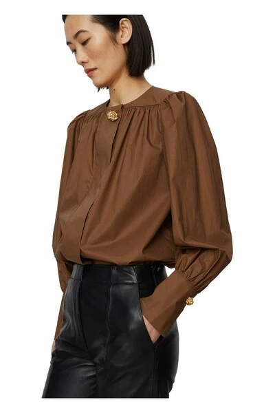 Deze frisse, loszittende blouse heeft verborgen knoppen aan de voorkant, een grote baubble bij de nek en kleinere kerstballen aan de manchetten. Er is licht puffen op de schouders en een gedompelde zoom. Draag verscholen in hoogbouwbroeken voor een chique outfit. Kwaliteit: 100% katoen (biologisch)