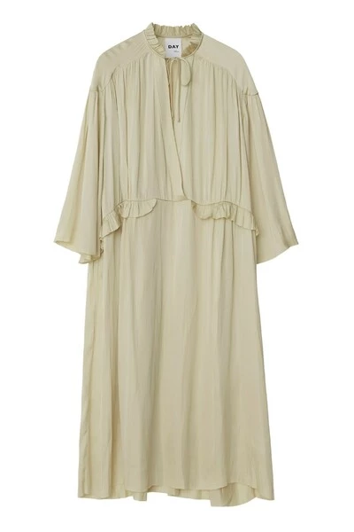 Een drijvende, oversized midi-lengte jurk met een V-neckline en een stropdas bij de nek. Er is een kleine ruche in de taille. De zoom en armen hebben een onafgemaakte naad, voor een enigszins casual look. Draag met een boxy blazer voor een speelse, stijlvolle outfit. Kwaliteit: 100% polyester