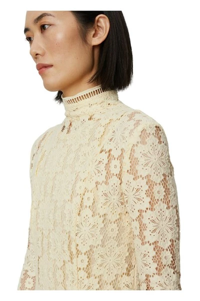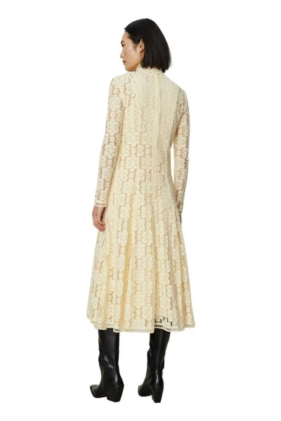 Een maxi-lengte jurk met een gehaakte kant-stijl overlay en een binnenste slip. De overlay heeft een zip-sluiting in de rug, een A-lijnsilhouet en een hoge nek. Combineer met kniehoge laarzen voor een verfijnde look. Kwaliteit: 67% nylon 33% katoen