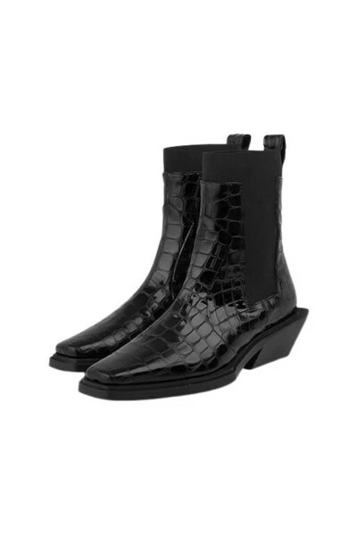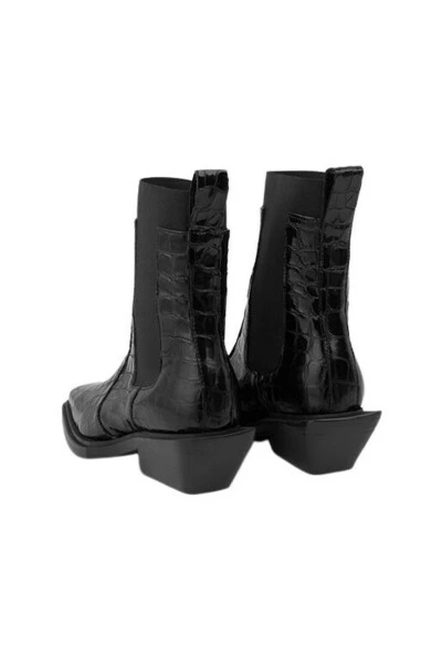 Deze enkelhoogte pistoollaarzen hebben een vierkante teen, elastisch paneel dat boven de bovenkant van de laars uitkomt en het tabblad bovenaan trekt. Draag met een elegante jurk voor een moderne outfit. Kwaliteit: 100% echt leer