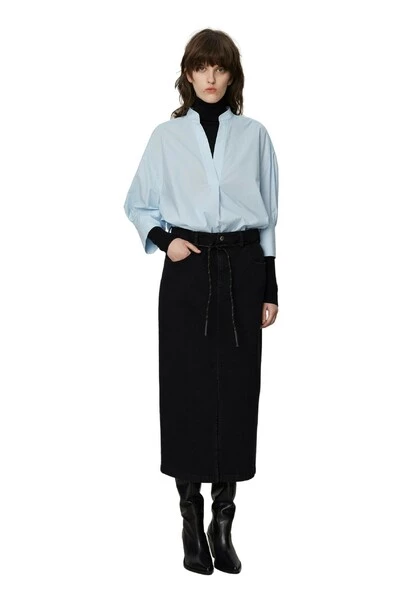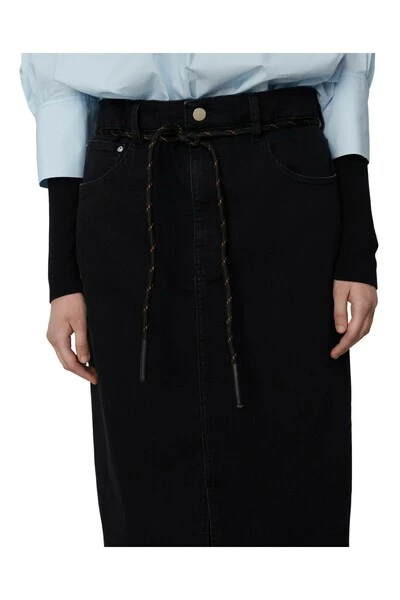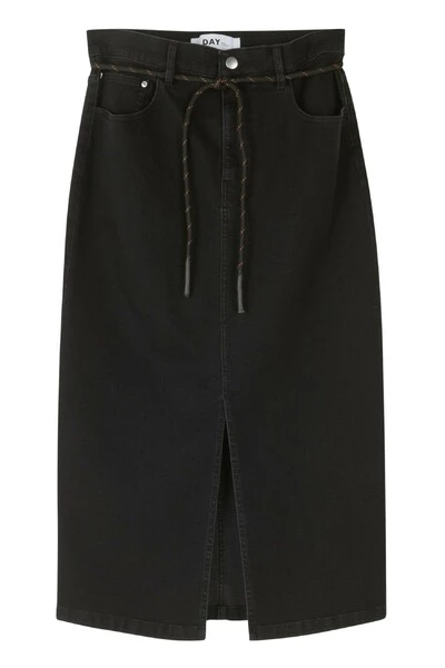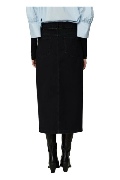 Deze midi-lengte, stretchy denim kokerrok bevat zakken aan de zijkanten en achterkant, een spleet aan de voorkant en een verwijderbare nylon riem. Draag met een T-shirt verscholen voor een moderne look. Kwaliteit: 82% katoen 16% polyester (pc) 2% elastaan