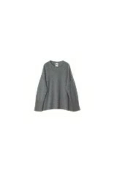 Een extra grote, zacht gebreide pullover met zichtbare naden overal en ronde halslijn. Draag over geplooide broek voor een elegante en professionele outfit. Materiaal: 75% wol 25% polyamide